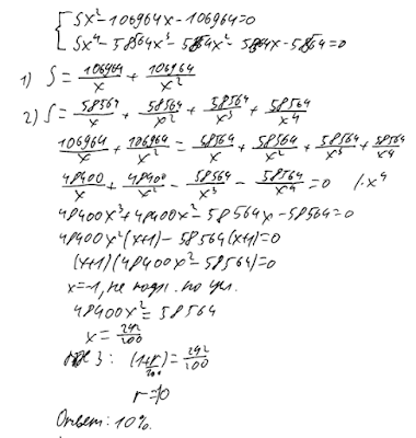 решении без объяснений записаны уравнения. Переход от системы к уравнению