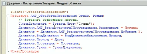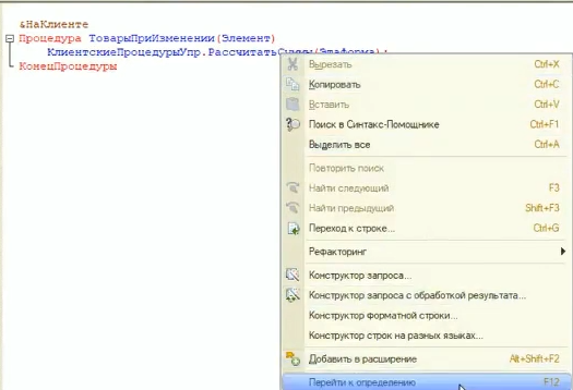 Перейдем к определению процедуры РассчитатьСуммы из общего модуля.