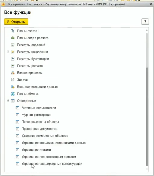 - Загрузка расширения в информационную базу;