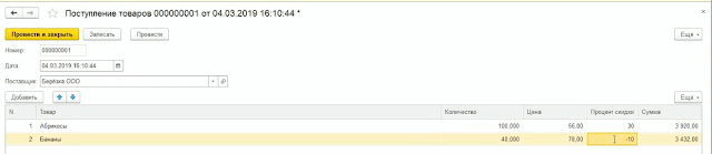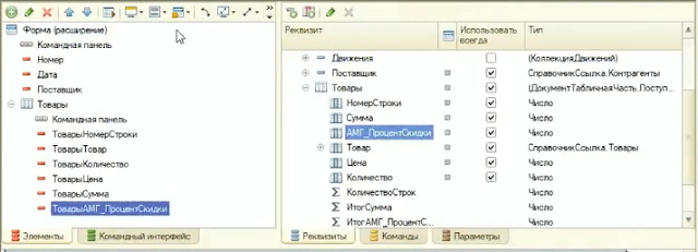Добавим в расширении к табличной части этого документа новый реквизит «Процент скидки».