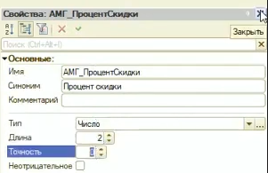 Перенесем реквизит «Процент скидки» на форму, перетащив его из правой колонки в левую.