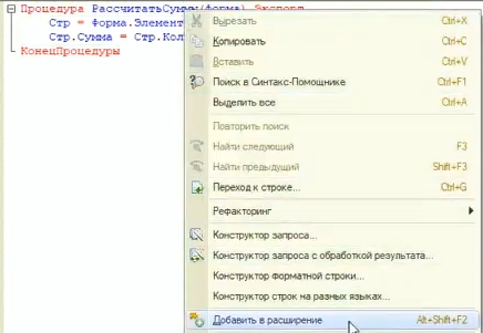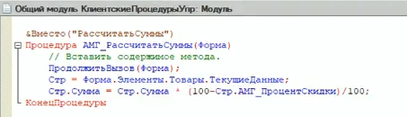 Опишем перерасчет Суммы во вновь созданном модуле расширения.