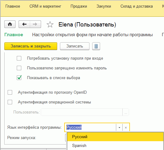 клавиатуры при входе в «1С:Предприятие». Может не заполняться - На данном языке пользователю будет представлены наименования элементов интерфейса. Может не заполняться