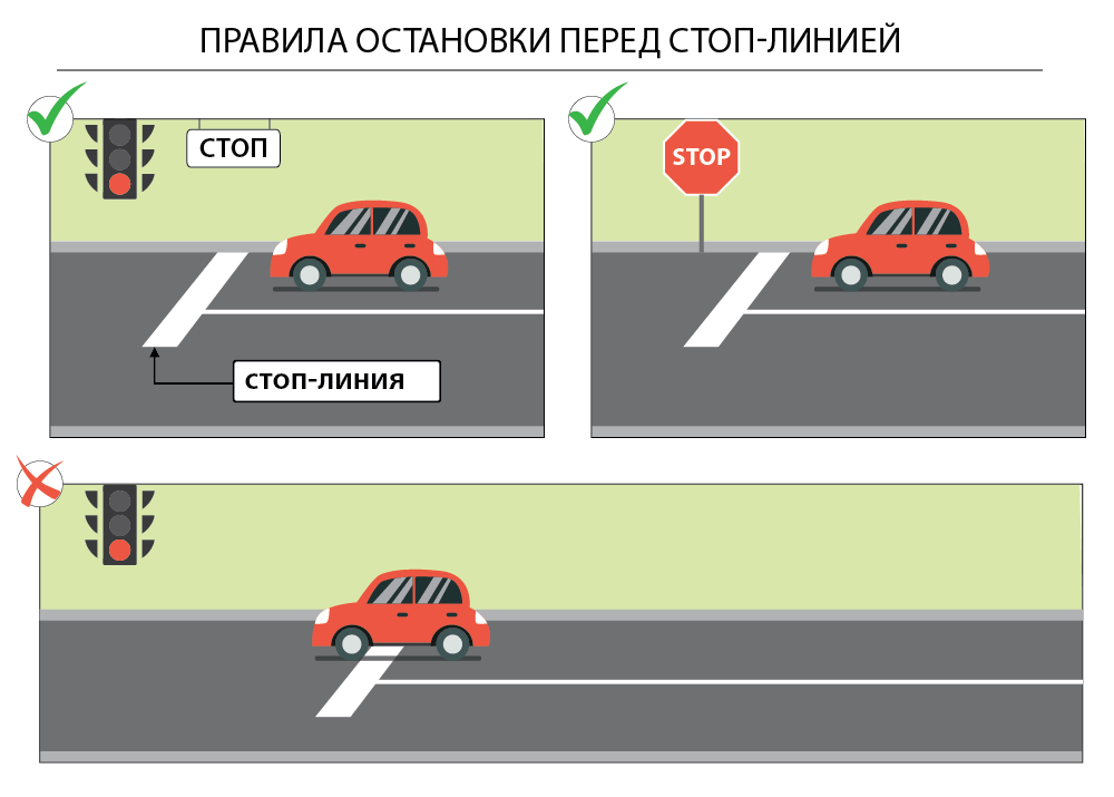Даже опытный водитель может не заметить стоп-линию или поздно затормозить, наехав на нее. В этом случае водителю лучше дождаться зеленого сигнала светофора, пропустить пешеходов или другие машины и продолжить движение. Если он начнет двигаться задним ходом, чтобы машина стояла до стоп-линии, то получит штраф и может врезаться в автомобиль сзади.