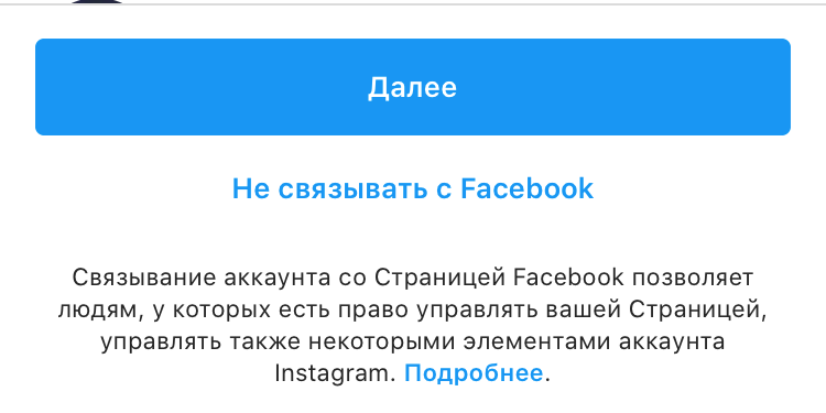 Если вы не хотите связывать аккаунт со страницей фэйсбук, просто нажмите «Не связывать аккаунт», но в этом случае вы не сможете запустить таргетированную рекламу или сделать кросспостинг.