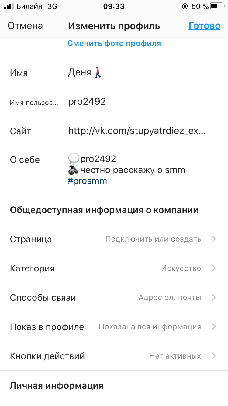 Если вам по какой-нибудь причине необходимо изменить категорию или контактные данные, сделать это можно следующим образом: На главной странице профиля нажмите «Редактировать профиль»