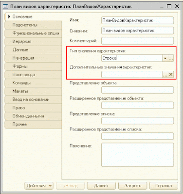 - Обязательно должны быть заполнены свойства «Тип значения характеристик» и