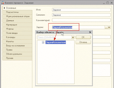 Задача отражает движение бизнес-процесса по точкам маршрута. При этом в бизнес-процессе на закладке Основные указывается задача того типа, что будет использоваться в процессе: