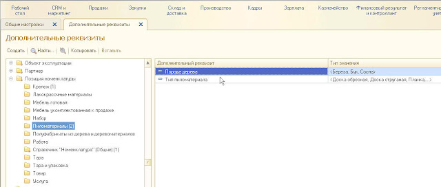 Из этого же дерева дополнительных реквизитов можно добавить и реквизиты, специфичные для конкретных видов номенклатуры: