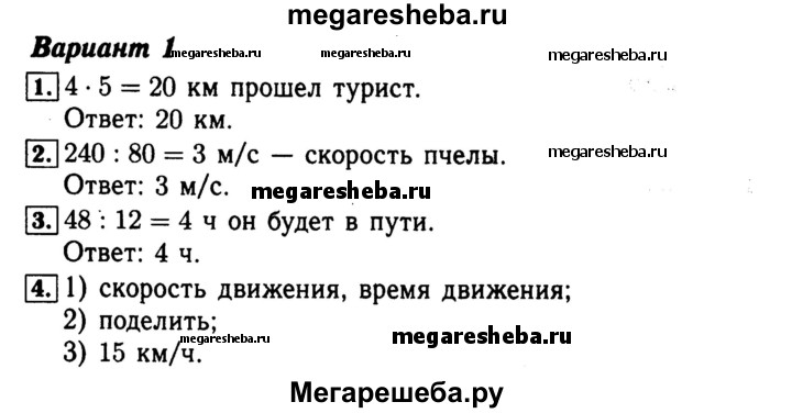 Проверочная работа по математике для 4 класса по теме: «Скорость, время, расстояние».