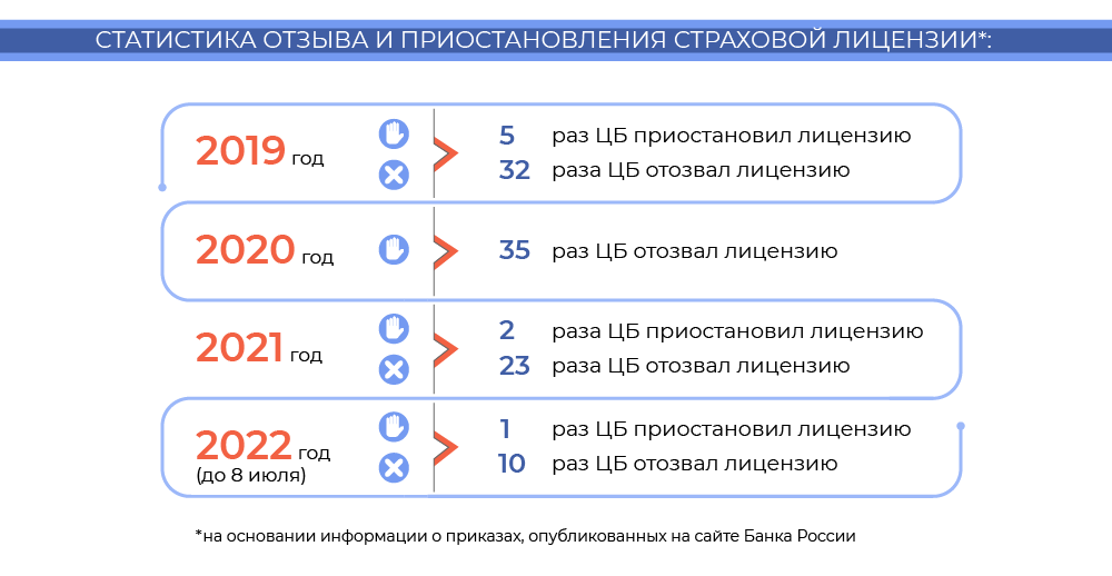 - Приостановка лицензии. Это грозит существенными ограничениями. Страховая компания не может заключать никаких новых договоров и пролонгировать старые. Можно только обслуживать уже действующие полисы.