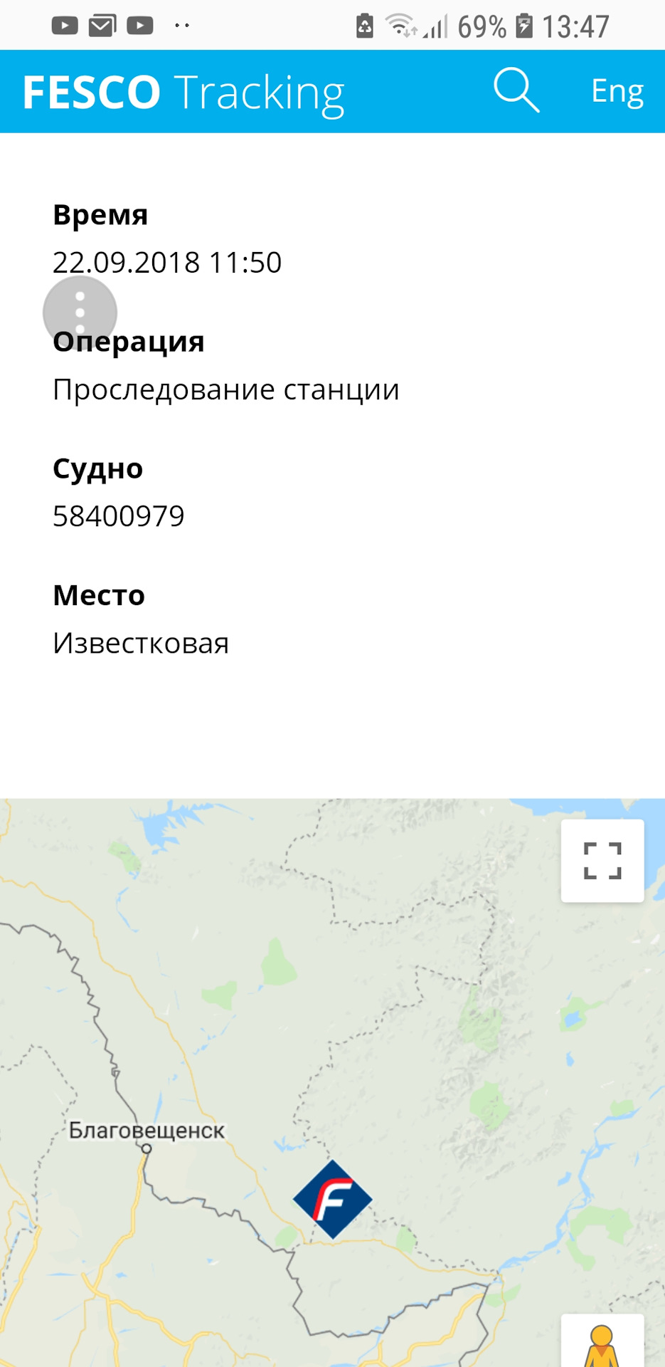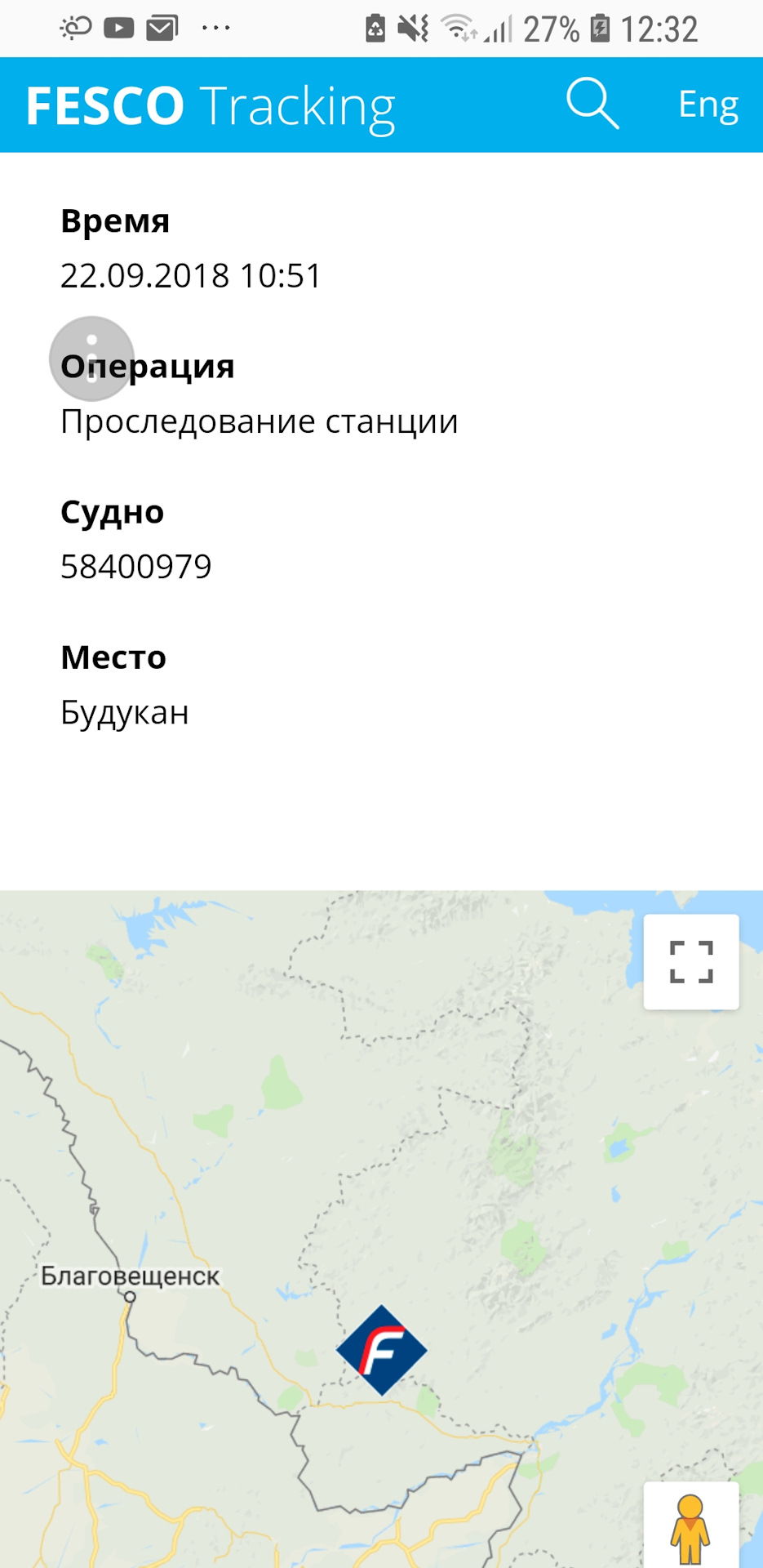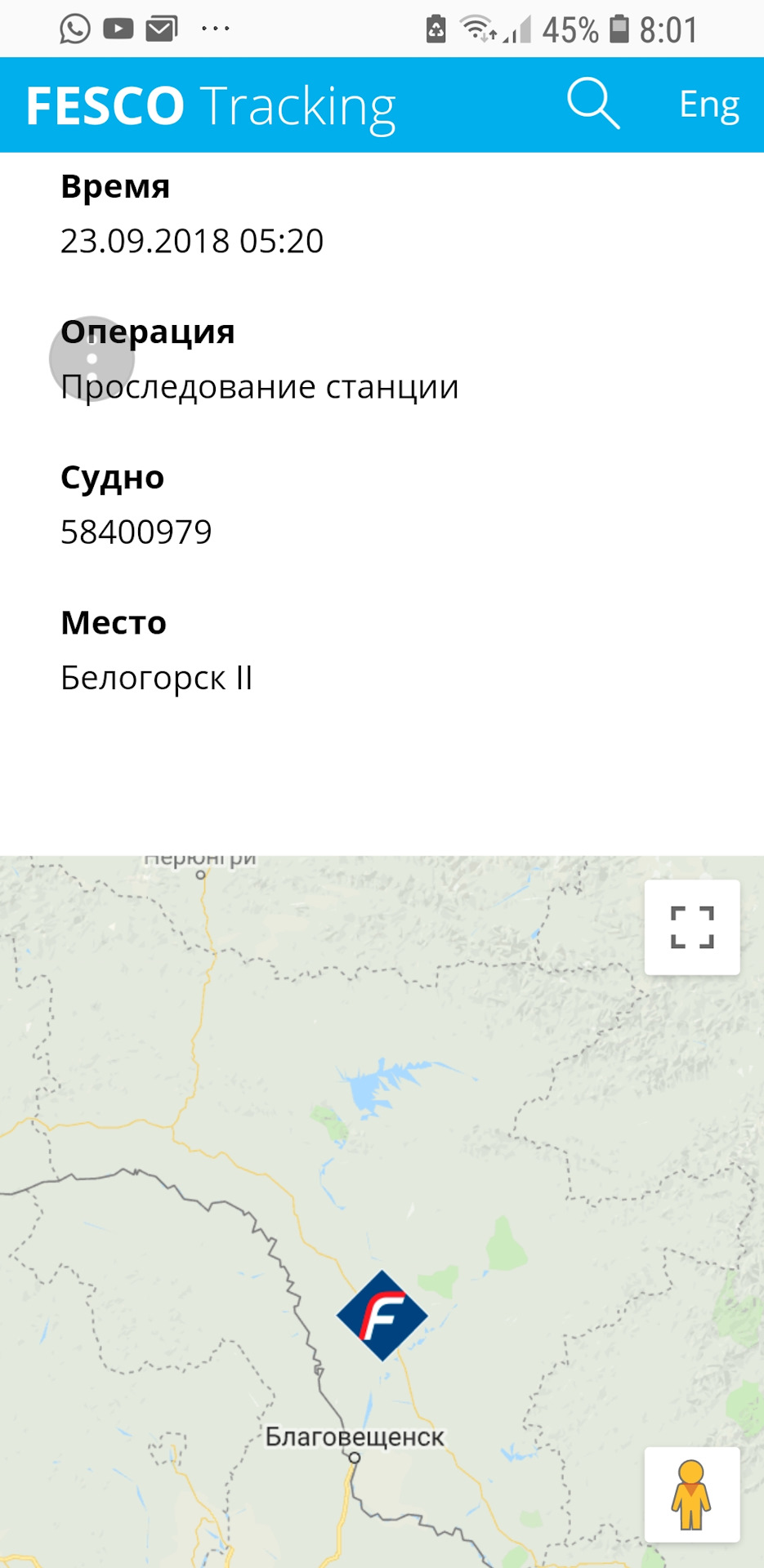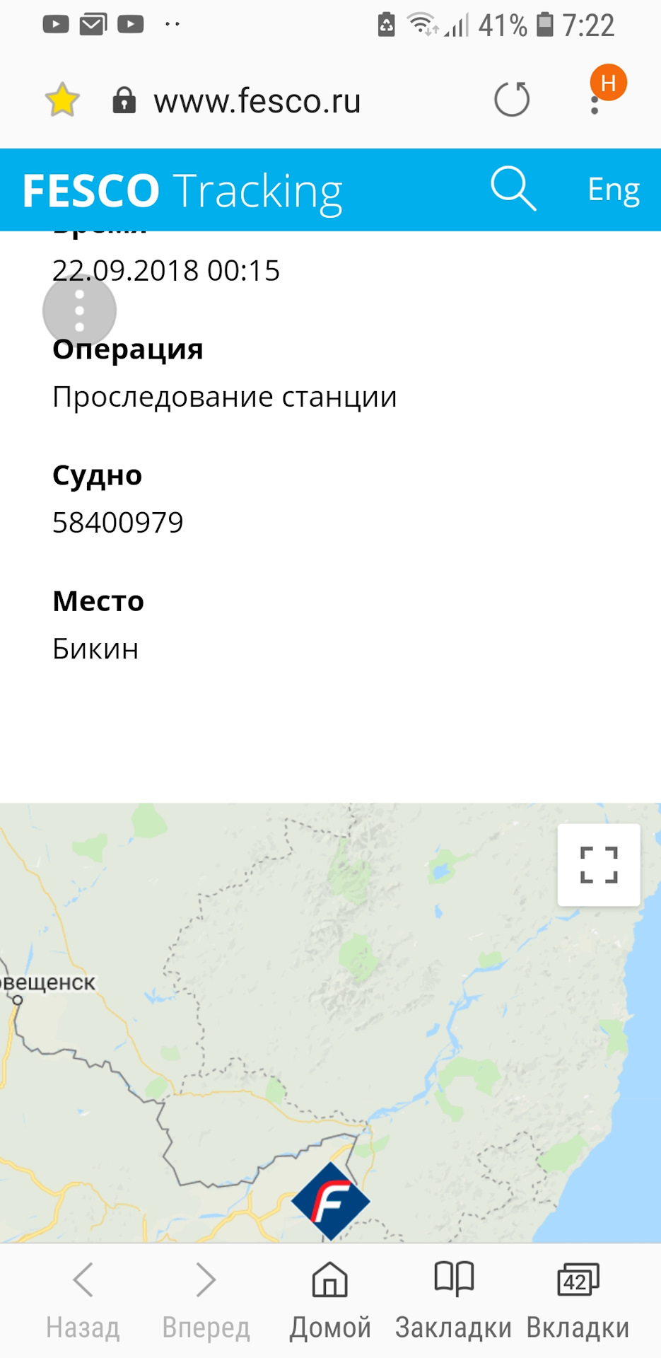 За 2 дня контейнер преодолел расстояние от Владивостока до Бикина, к вечеру – в Будукан, на 4 день –в Ушумун, далее-Кендагиры, за неделю до Читы-1. Еще 3 дня и Красноярск уже позади, через 2 дня вагон долетел до Тюмени, тут радости не было предела, смотрю выходит на прямую, и скорость набрал после БАМа, как вдруг вагон на обгонном пункте 46 поехал назад на Восток. В итоге во Владивостоке на терминале простоял 12 дней и 13 дней был в пути.