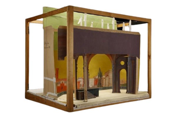Например, если искать композицию будущей декорации в форме квадрата, а форма зеркала представляет собой удлиненный прямоугольник, то при работе над макетом, сделанным в истинных масштабах сцены, эскиз окажется совершенно непригодным – он будет делать искаженное представление о характере оформления.