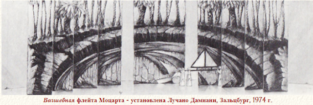 У зрителя при открытии занавеса возникает ощущение образа прежде всего от общего колорита сценической картины, который состоит из суммы (композиции) цветных плоскостей и объёмов, требующих в свою очередь пространства и освещение.