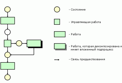 - формирует управляющие работы, а также состояния, характеризующие начало и конец каждой работы;