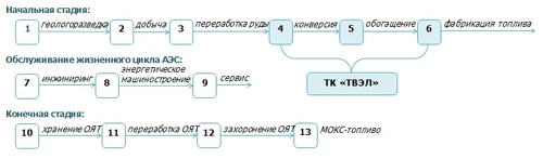 Место ТК «ТВЭЛ» в ядерном энергетическом цикле