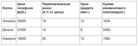 и тот же телефон продаётся в кредит на разных условиях. Условия даны в таблице.