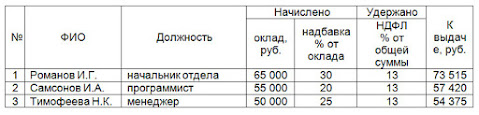 7. В таблице показана ведомость на оплату труда трёх сотрудников