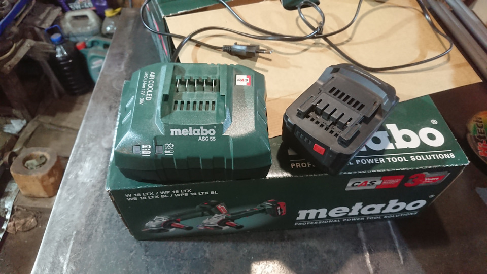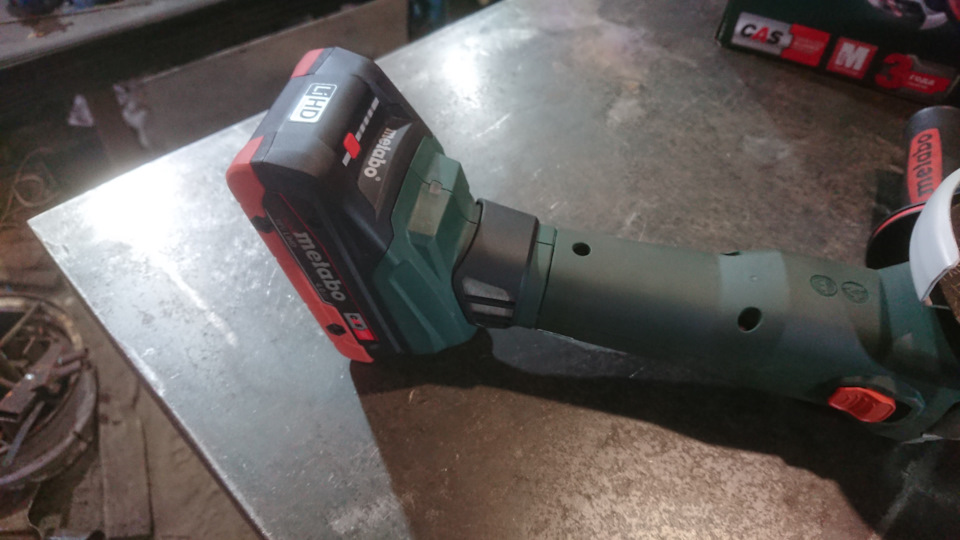 Еще два аккумулятора мне достались ранее в комплекте с шуруповертом, там были Li-HD по 4 А*ч, они потоньше, более новая модель. Жаль что такая болгарка не комплектовалась метабоксом, покупать отдельно всегда выйдет дороже. Шурик у меня в метабоксе, классный чумадан с ручкой такой.